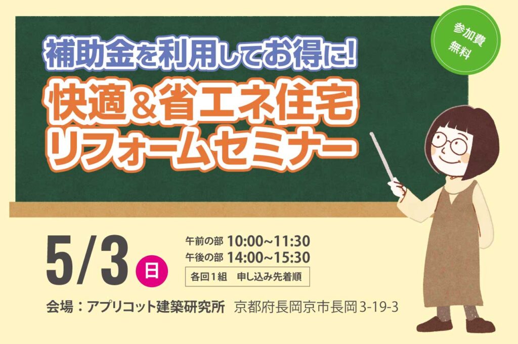 【セミナー情報】国の補助金を利用してお得に! 快適&省エネリフォームセミナーを開催します〈予約制・参加費無料〉